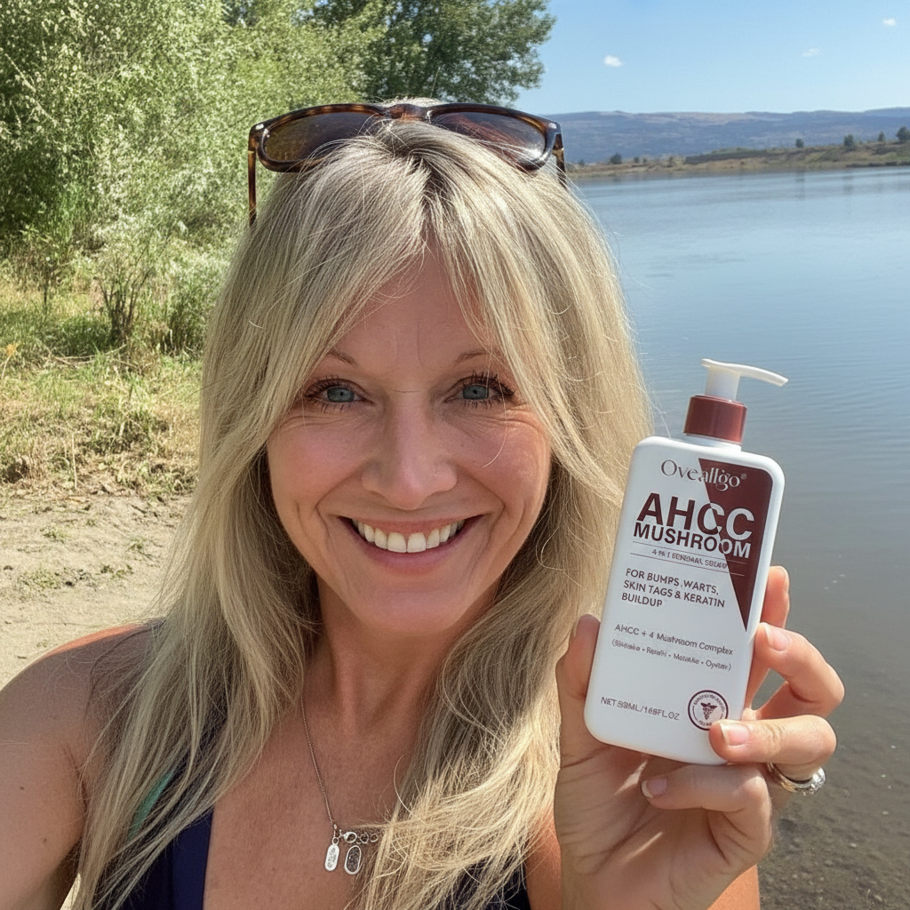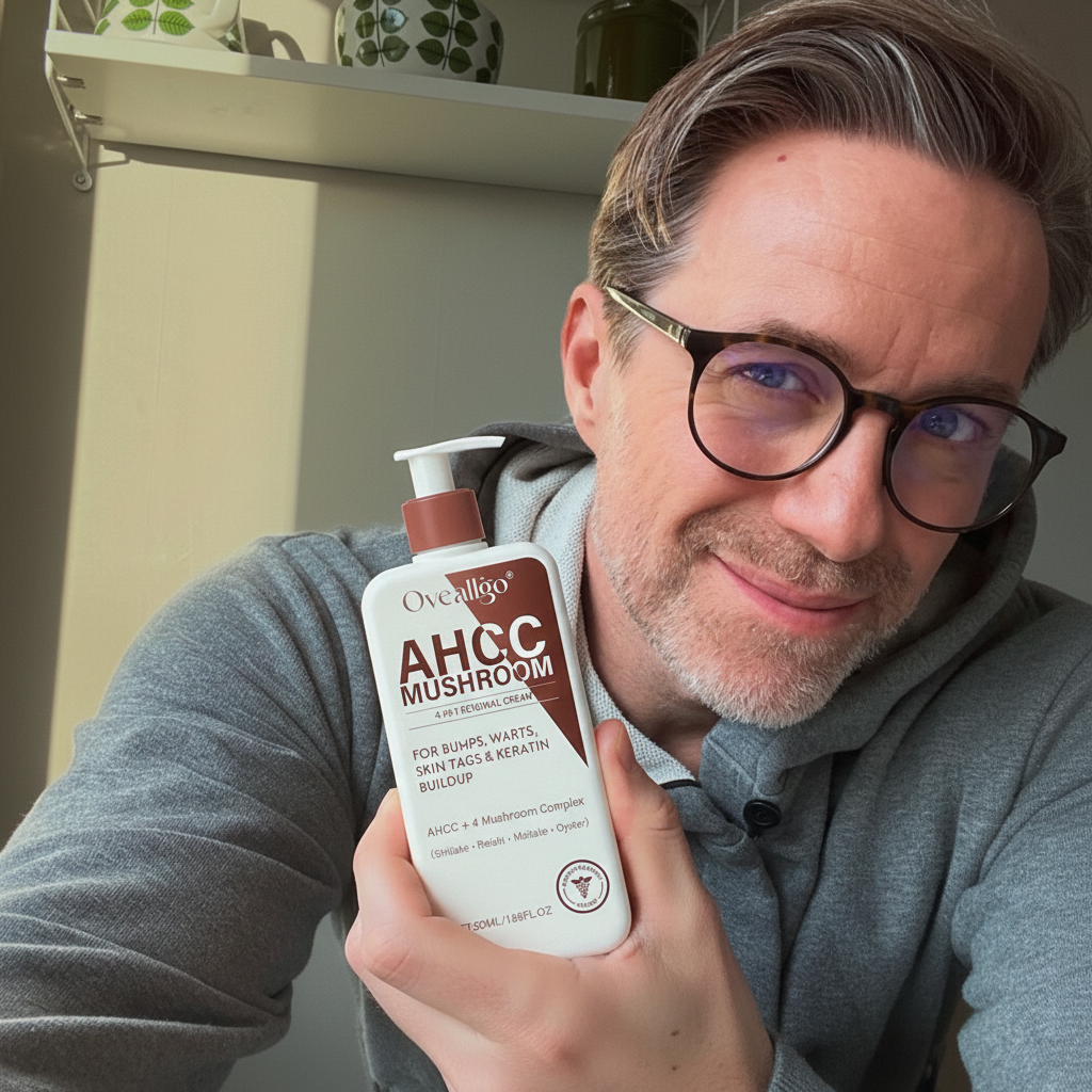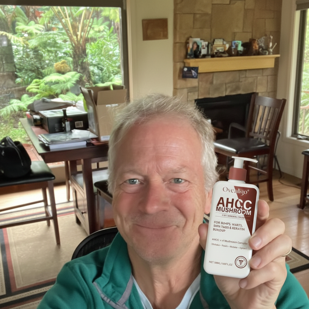"I had a small skin tag under my arm that irritated me every time I shaved.I didn’t want anything acidic near that area.Oveallgo® AHCC Cream was gentle and safe — within 10 days the tag dried, softened, and the skin looked smooth again."