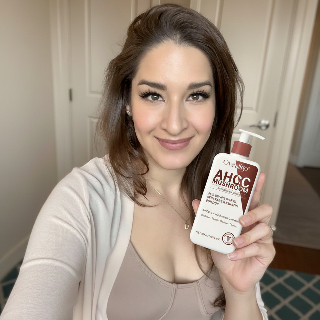 Oveallgo's AHCC mushroom formula solves the one problem other creams ignore: penetration. With 5,000 Dalton Alpha-Glucans, the ingredients finally reach where they need to go.