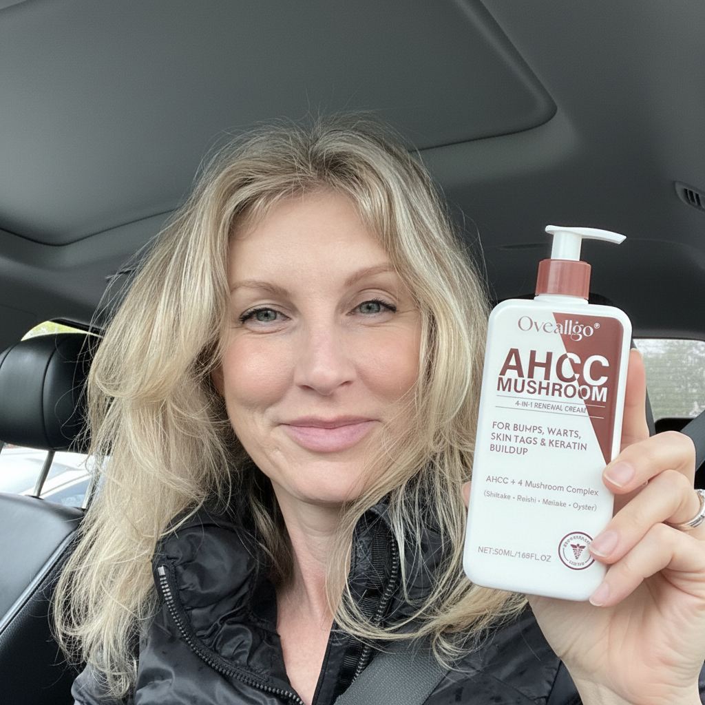 "I had a small skin tag on the side of my neck for years.Every remover I tried stung or turned the area red.Oveallgo® AHCC Cream didn’t sting at all — it softened the tag gradually.Around the second week, it flattened completely and the skin tone evened out.I finally feel comfortable wearing my hair up again."