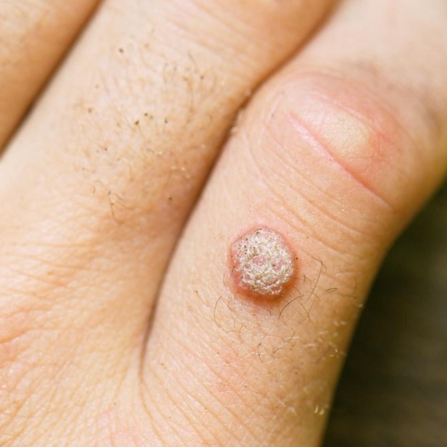 ❌ Hard, rough growths caused by the human papillomavirus (HPV).