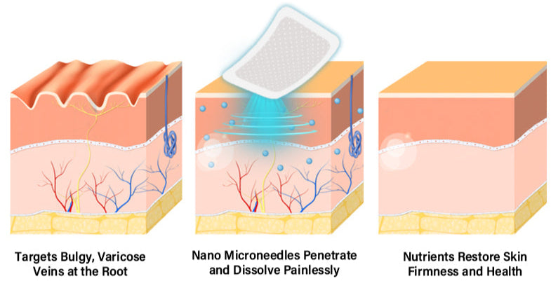 Each patch features hundreds of tiny, dissolvable microneedles that create micro-channels in the skin, allowing key ingredients like Polidocanol to reach deeper vein structures for maximum effectiveness.