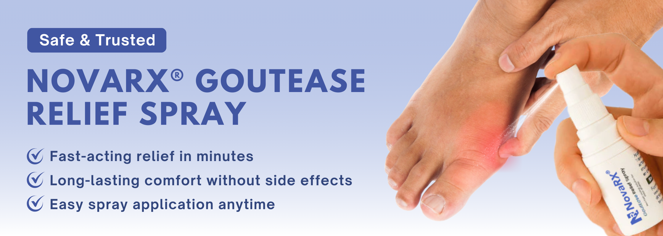 NovaRX® GoutEase Spray targets pain at the source with breakthrough absorption technology. Feel relief in minutes — lasting comfort without the dangerous side effects of pills.